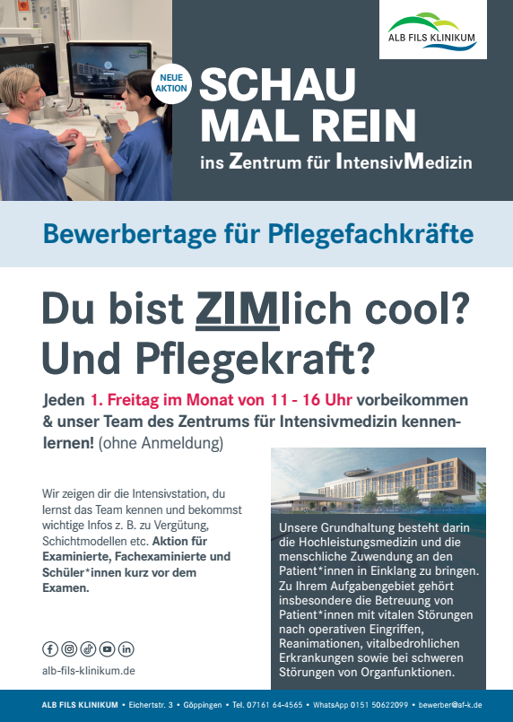 Das ALB FILS KLINIKUM ist der größte Gesundheitsanbieter zw. Stuttgart und Ulm und ist Akademisches Lehrkrankenhaus der Universität Ulm. Mit modernster Medizin und professioneller Pflege stehen wir den Menschen in der Alb-Fils-Region 24/7 zur Seite. Der Klinik-Neubau in Göppingen ist eines der visionärsten Gesundheitseinrichtungen im Land.