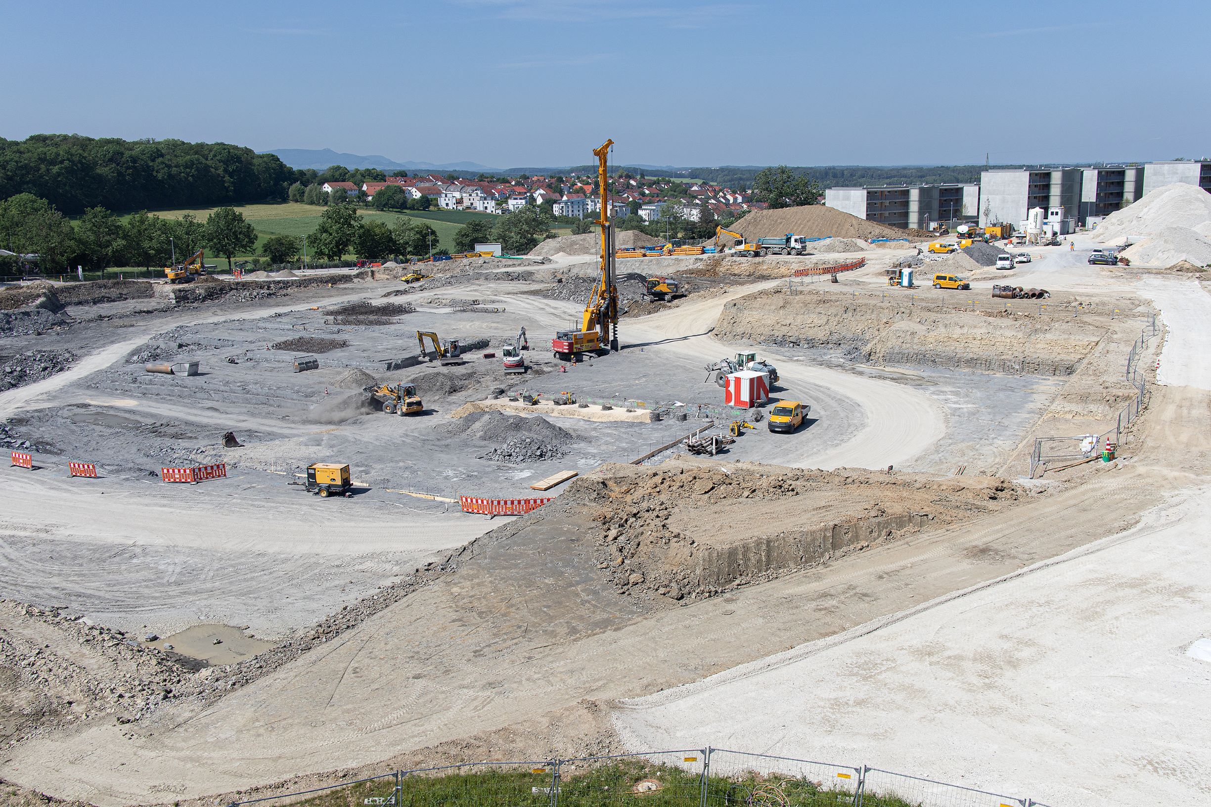 Die weiteren Schritte sind dann voraussichtlich ab Mitte Juni die Arbeiten an neuen Wasserversorgungs- und Entsorgungsleitungen auf der Ostseite des Baufelds sowie Arbeiten an der Baustellen-Infrastruktur. Dazu zählen etwa die Herstellung von Baustraßen, temporären Medienversorgungen und Baustelleneinrichtungselementen. „Wenn nichts Gravierendes dazwischenkommt, werden voraussichtlich Ende September die Arbeiten an der Baugrube und den vorbereitenden Maßnahmen abgeschlossen sein“, ist Geschäftsführer Schmid zuversichtlich.