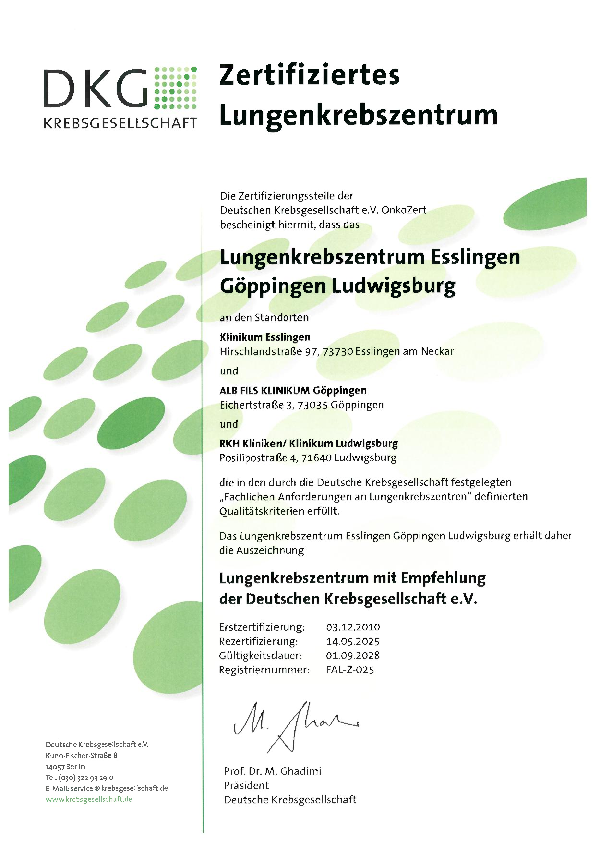 Das Zertifizierte Lungenkrebszentrum Südwest mit den Standorten Esslingen, Göppingen und Ludwigsburg wurde 2023 gegründet und ist eines der größten Zentren für Lungenkrebs in Baden-Württemberg.