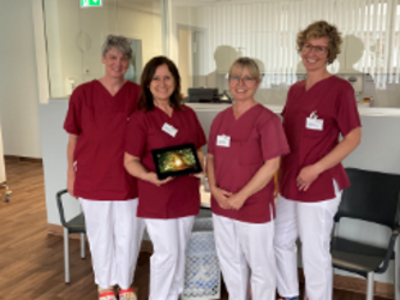 Der Förderverein hat dem MVZ Gynäkologie ein Tablet gesponsert, als Unterstützung für Chemotherapie-Patientinnen. Es dient Patientinnen, die nicht an der Progressiven Muskelentspannung nach Jacobsen teilnehmen können. Auf dem Tablet wird ein entsprechendes 30-minütiges Programm gezeigt und steht am Patientenbett.