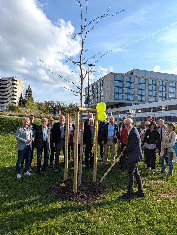 Im Zeichen der Verbundenheit mit dem landkreiseigenen Klinikum pflanzte der Verein Freunde und Förderer ALB FILS KLINIKUM e.V. am 14.04.2025 anlässlich seiner Mitgliederversammlung symbolisch einen 5,5 m hohen Baum.